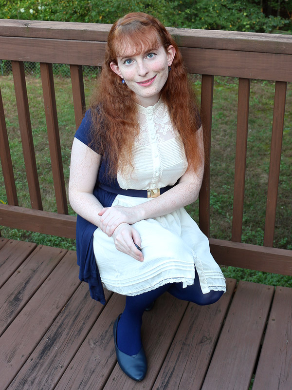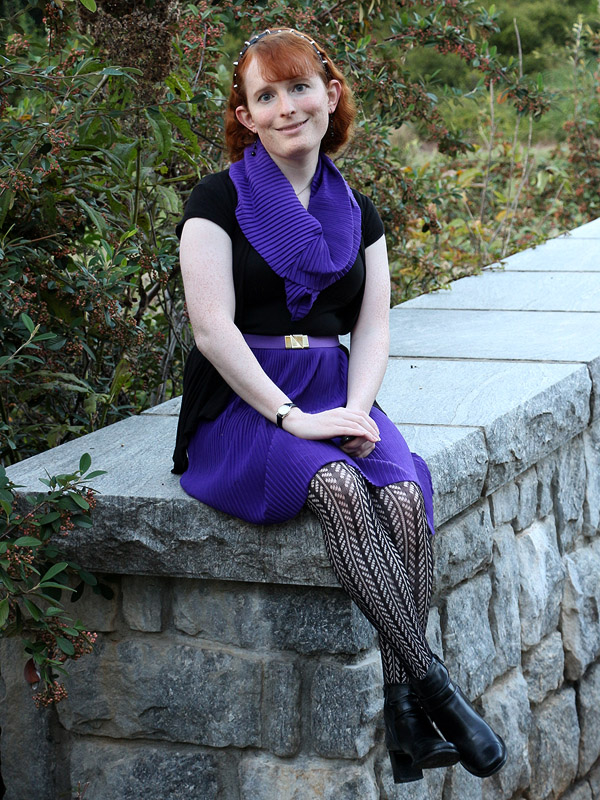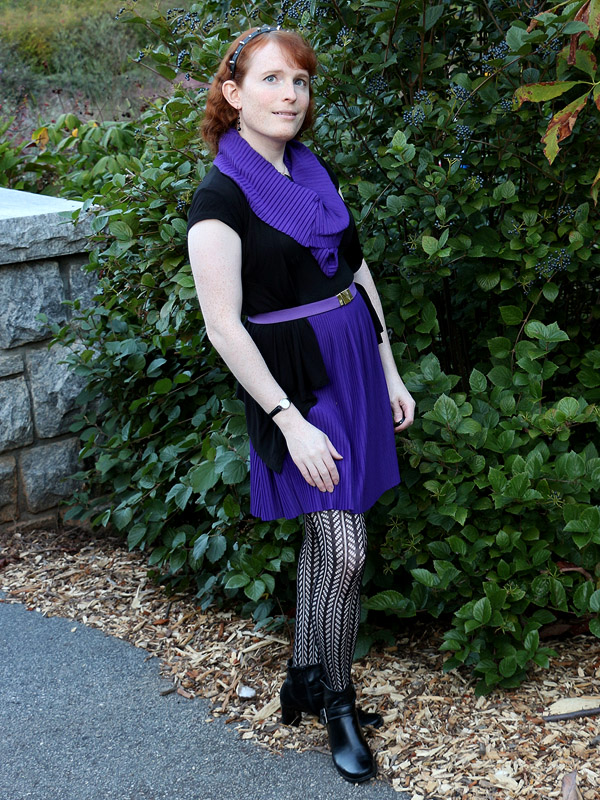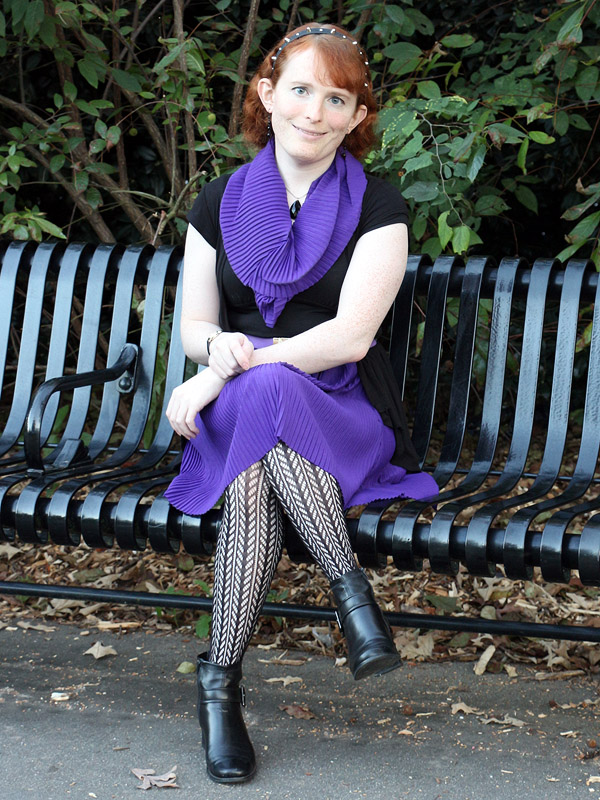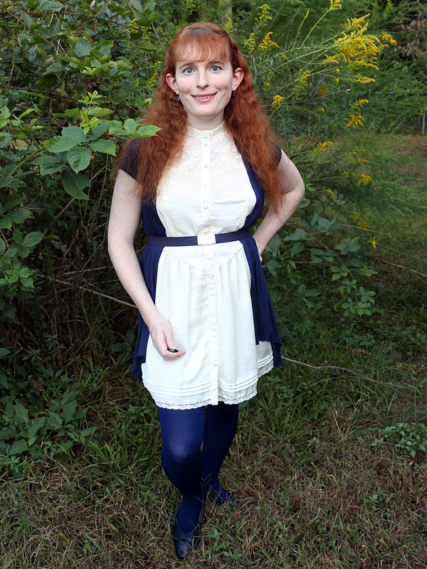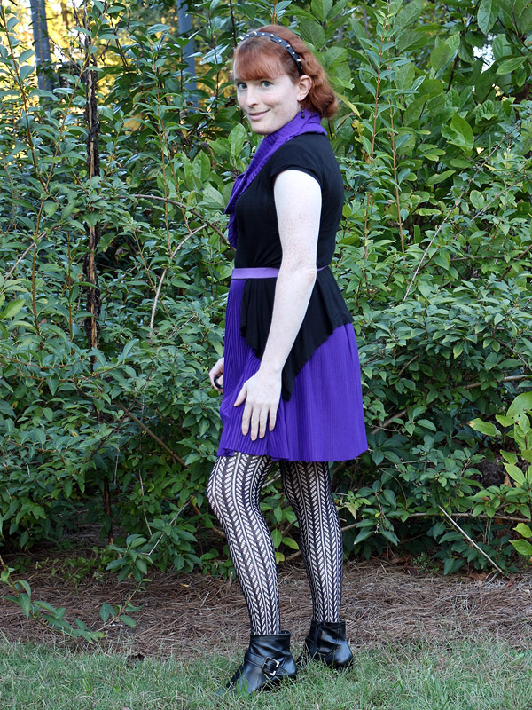 I bought these tights in connection with an Amy Pond costume I'd eventually like to do, her outfit from the Doctor Who episode "Vampires of Venice". I picked up another pair in the screen accurate dark brown, but am wearing the black pair here because it fits my own style better.