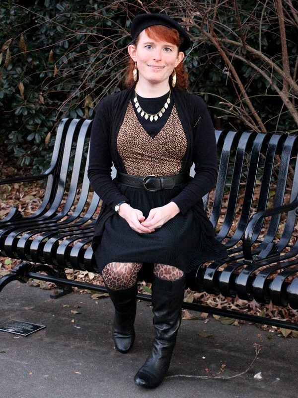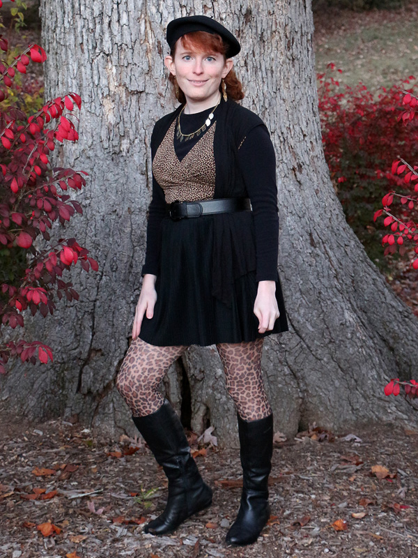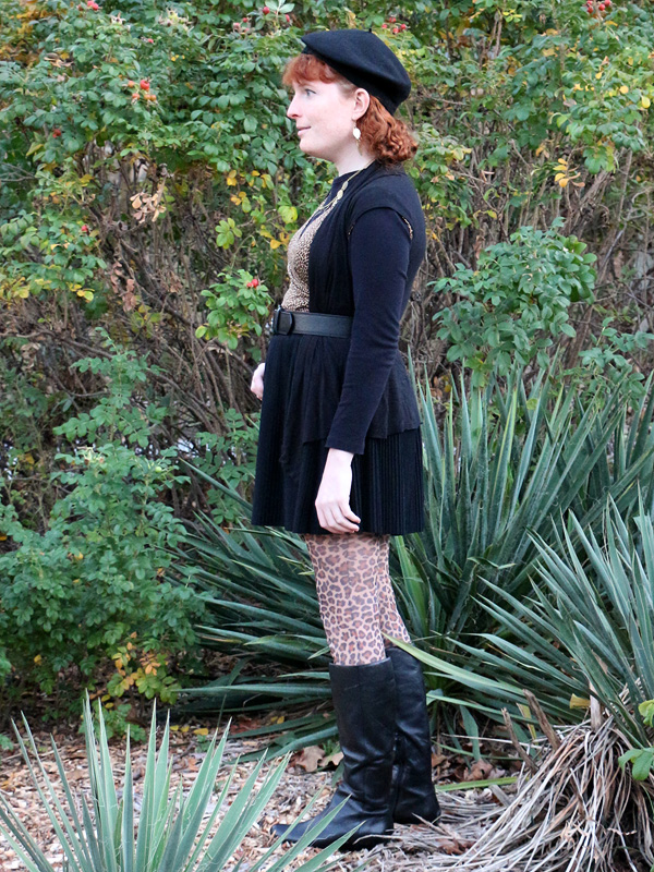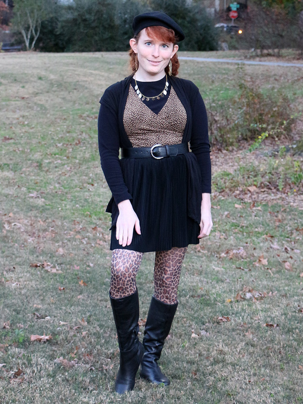 I'm very fond of these leopard print tights, but I rarely wear them, as I don't find that they go well with much. All of my leopard prints clash severly with one another, so I try to compensate by either wearing them on either separate occasions or separated by a wide spanse of something else.