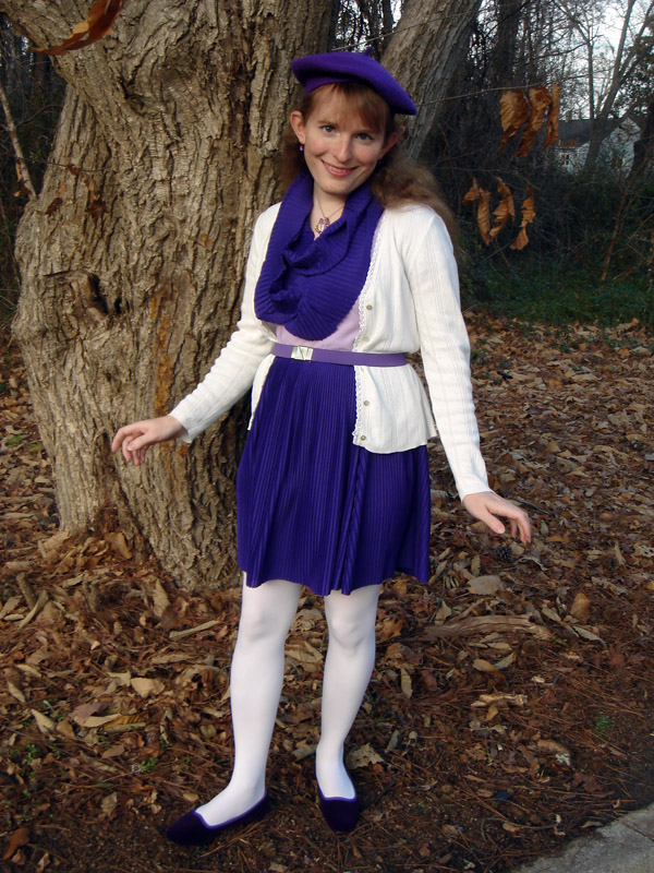 Purple scarf made from bottom of True Freedom skirt from Sears, 2012