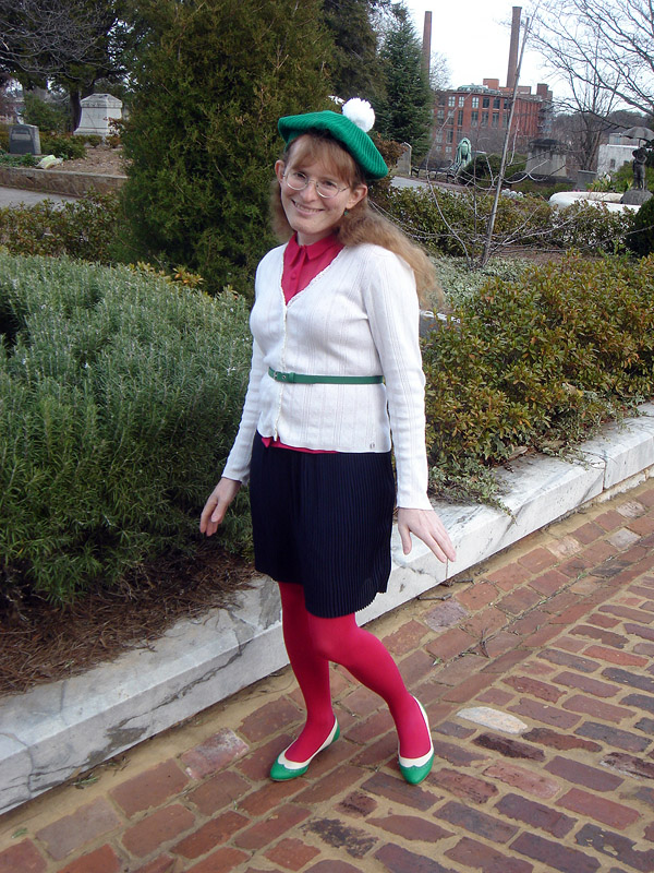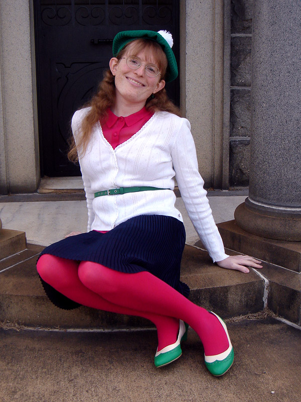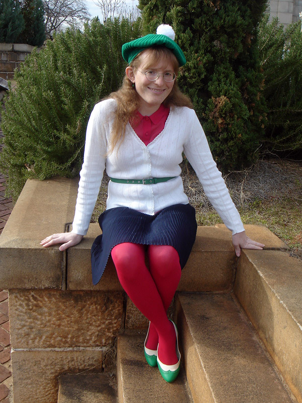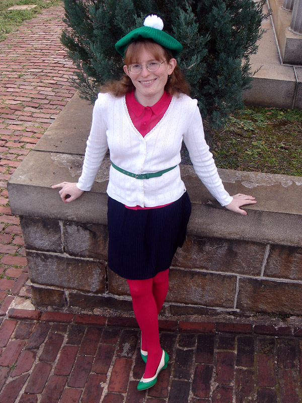 I wore this to church the Sunday before Christmas, on the basis of this being the one time of year I thought I could get away with wearing red and green together. I think it worked a little better than the last time, a couple of years ago. I wore a green polo, a red sweater vest, and khaki pants. My mother gave me a funny look, so I said, "It's Christmas!" She responded, "And you're a tree!" To make matters worse, Hazel arrived a few minutes later and agreed with her.