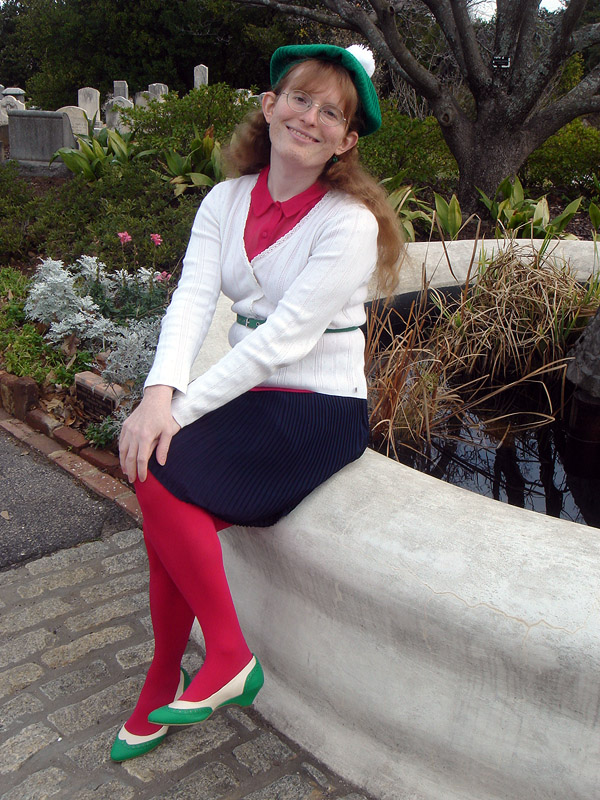 The red top is my first purchase directly resulting from seeing it on a blog. The price was a bit steep for me, so I held out until I found it on eBay for less than half of retail. I'm very pleased to see that the color is identical to that of my tights.